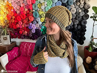 The other iconic texture of fall has to be houndstooth, so it just makes sense to use the lovely houndstooth stitch to make yourself a cute and cozy set of accessories for Autumn. There are fall crochet patterns here for a stylish slouchy beanie, a cozy infinity scarf, and some seriously on-trend fingerless gloves too.