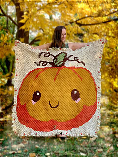 Well, would you look at this cutie pie! A smiling pumpkin friend complete with rosy cheeks in the kawaii style adorns the surface of this C2C blanket. The best thing about crocheting a blanket for fall is that the blanket can warm you up while you work on it, so you can enjoy the benefits of this project well before its completion.