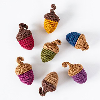 Quick little crochet projects like these acorns are perfect for adding some handmade charm to your Autumnal decorations. You can use these simple single crochet acorns in any number of ways. String them together to make a pretty garland, put a handful in a nice basket to display, or attach little cards to them to use as place cards.