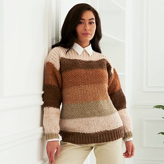 Want to know the trick to incorporating multiple colors into your projects without having to actually change colors? The secret is in the cake yarn! Try it out with this stylish sweater made in seed stitch and ribbing. The pattern only employs very minimal shaping and the bulky weight yarn is easy to work with.