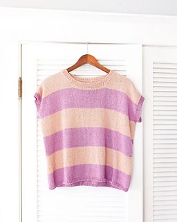 If you are learning knitting in the hopes of making your own clothes, then this might be a great place to start! This tee pattern is knit in the round from the bottom up using stockinette and rib stitches. To keep things simple, there are no sleeves. However, the generous sizing allows the top to drape off the shoulders to give the illusion of sleeves.
