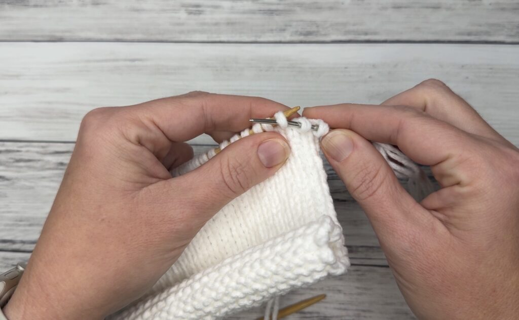 Rows 3-32: Repeat rows 1-2, working in Stockinette stitch (k1 row, p1 row).