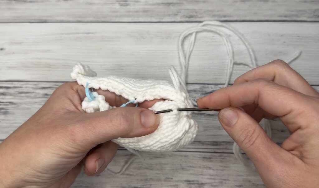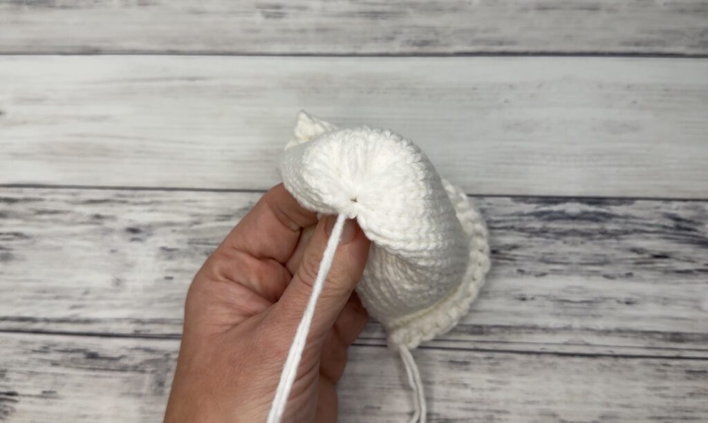 To create neck, thread yarn through every other stitch about ⅓ of the way down from top.