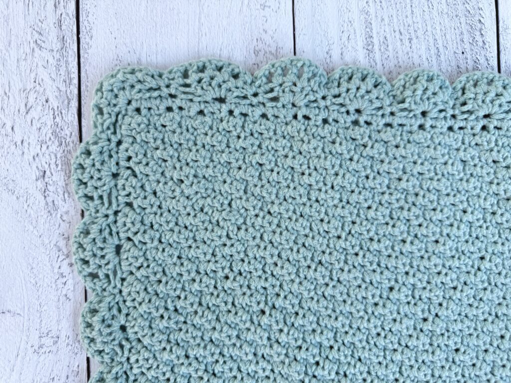 The border begins with a round of single crochet, working ch 2 spaces to turn the corners, then the shell border is worked. If you change the size of the blanket, ensure you have a multiple of 6 on each side of your blanket for the border to work properly.