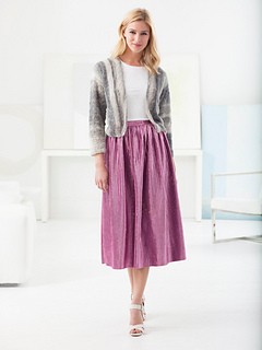 This is the kind of cardi that you will never want to take off. You could practically live in this thing it’s so roomy! The unique stitch pattern alternates columns of easy eyelet lace and ribbed stitches. This generates a fabric with a fabulous texture and a dash of breathability so you won’t get overheated when you’re swathed in all that yardage.