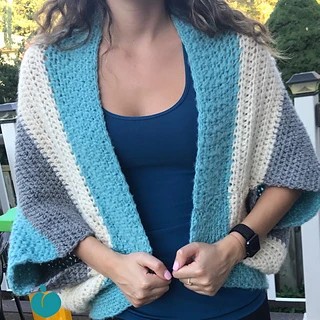 A short sleeve cardi is a summer must have if you love the layered look. Pop it on over a tank top and jeans for an easy breezy style that’s sure to impress. You can make this ombre beauty using the recommended self striping yarn. The pattern calls for knit and purl stitches along with knit 2 togethers and yarn overs.