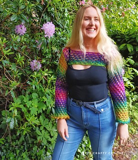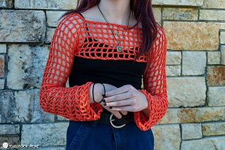For those days when it’s just a little too chilly for a blouse on its own, add an extra cute layer with this super cute outfit topper. This versatile little number can easily be styled up or dressed down to suit your needs. You’ll be using single and double crochet stitches along with post and shell stitches for this design.