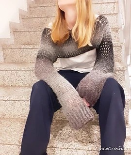 Keep your arms warm without adding unnecessary bulk to your torso with this stunning long sleeved shrug. It’s like two extra long arm warmers that are connected across your upper back. It’s giving me all the cool girl vibes and I love the edginess. You can make one for yourself using just double crochet stitches.