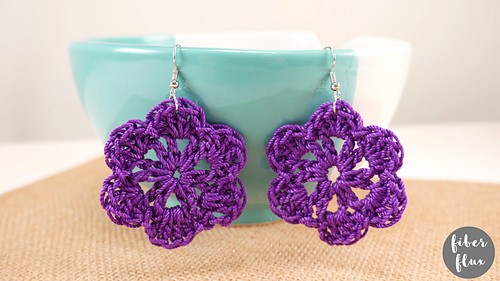 These pretty flower earrings must be a ton of fun to make because the designer couldn’t stop themself at just one pair. I adore this double flower design and I especially like how the flowers are different sizes. Of course, my favorite part has to be the pretty little bead stitched at the center of each flower. The pattern calls for single, half double, and double crochet stitches.