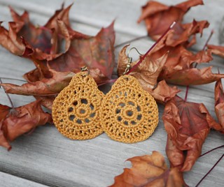 These beautiful golden yellow earrings remind me of ripe pears and the bountiful season of Autumn. The pattern calls for single, half double, double, and treble crochet stitches. Each step of the design includes a helpful photo, so it’s easy to double check that you’re on the right track as your project progresses.