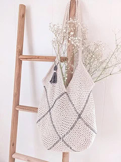 Three large granny squares come together to make this gorgeous modern tote bag. A simple two color design draws attention to its unique construction method. It’s large enough to make for a practical market bag while also being cute enough to stand in for your everyday bag. For this design, you’ll be using just single and double crochet stitches.