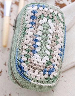 Two granny stitch rectangles form the basis of this colorful make up bag design. A self striping yarn gives it even more color and character to help make it feel extra special and unique. The pattern uses just single and double crochet stitches, but working with the thin crochet thread may pose a challenge for beginner crocheters.