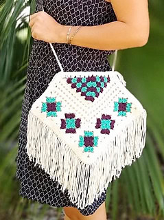 Many crochet granny square bags follow the same basic formulas for how to lay out the squares. This design is a real head turner and you’re definitely going to want to take a second look to see the interesting layout. The pattern calls for just single and double crochet stitches. For an extra bit of boho flair, the fringe is an absolute must.