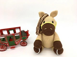 Crochet horse patterns with extra accessories offer interactive fun to children. Kids will get to practice putting a bridle on a horse and taking it back off with this clever design. This horse pattern has the horse’s mouth open to accommodate the bridle and also the yummy carrot snack that you can make for the horse in case he gets hungry.