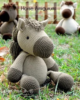There is something extra cute about this next horse amigurumi. I think it is the play on proportions with the adorably large ears, the oversize head, and the big horse feet. The mane of this horse pattern stands out the most. It is made from strands of yarn that are brushed out to be extra soft and fluffy.
