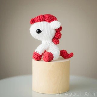 While we’re on the subject of crochet horse patterns with a non-traditional color scheme, check out this pretty white pony with bright red hooves and hair. This horse was designed to celebrate the Chinese New Year and the year of the horse in 2014. Red is a symbol of good luck in Chinese culture, hence the bright locks!