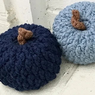 The alpine stitch adds tons of delicious texture to the next one of our crochet pumpkin patterns and it is worked double stranded for even better stitch definition. It is also one of the few featured designs on this list that is worked in the round rather than flat in back and forth rows. But the most unique thing about the design might just be the bold shades of blue the designer chose.