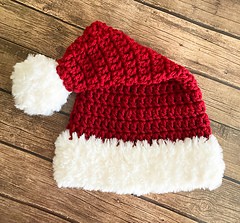 Keep it classic with this easy crochet pattern for a Santa hat. Staying traditional ensures that your project will never go out of style and can be enjoyed year after year! The pattern calls for single, half double, and double crochet stitches along with front and back post double crochet stitches.