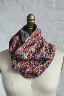 Escama means scale in Spanish, so you can see that the name of this cowl design is really quite fitting! A richly colorful variegated yarn combined with the knit dragon scale stitch give this cowl design its showstopping appearance. As an added bonus, the dragon scale stitch has a really nice drape so you won’t have a stiff and uncomfortable cowl.