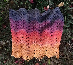 Yarn in earth tones of brown and tan are a great choice for recreating the look of leathery dragon wings. This uniquely shaped shawl using a knit version of the crochet jacob’s ladder stitch to achieve the distinct braided ridges radiating outwards from the neck.