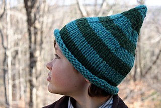 With super bulky weight yarn at your fingertips you can whip up one of these pointy gnome hats in a snap. The simple and beginner-friendly design calls for just stockinette stitch. This project provides an excellent opportunity for using up some hand spun yarn if you happen to have any lying around!