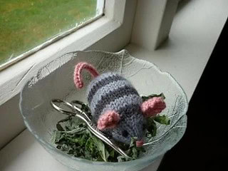 This chubby little mouse looks like he might have been eating too much cheese. Your kitties are sure to delight in his big floppy ears and long enticing tail. The pattern is knit in the round in stockinette stitch using basic decreases. A little length of knit icord is used for the tail. The ears are knit separately and then sewn on.