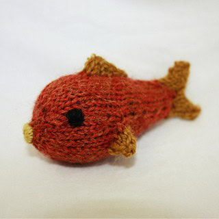 You can probably recognize the iconic shape and color of the snack that smiles back. Cats might not like cheese crackers but they do like fish! This easy cat toy is very simple to make since it it is all one piece that is worked flat in back and forth rows of stockinette stitch. If you use a wool yarn like the one recommended, then you can felt the finished project for added durability.