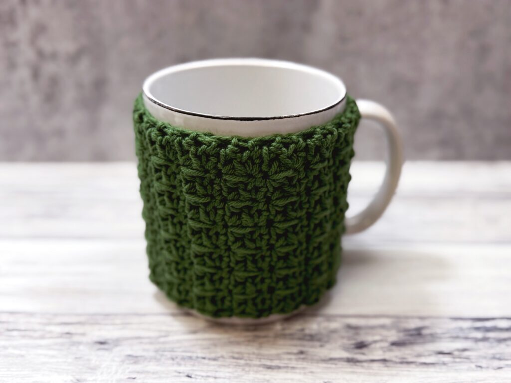 You don’t have to use cotton for a mug cozy, though, as mugs don’t usually get hot enough to melt synthetic fibers, so I’ve seen cozies made with all types of yarns. Grab some worsted weight yarn and use up that stash!